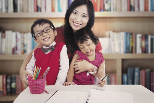 Family in library Published July 12, 2015 at 500 × 333 in About Portrait of smiling young asian mother with her children. shot in the library